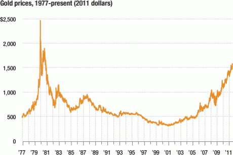 Ketiga, emas tidak selalu mengalami masa jaya atau selalu meningkat setiap tahunnya. Pada era 70 – awal 80 emas juga sempat mengalami peningkatan hingga 17x lipat. Namun kemudian kembali pada titik awal dan meningkat relatif lambat sesuai dengan inflasi hingga awal tahun 2000. Apakah siklus era 70 – awal 80 tersebut terulang kembali pada pergerakan harga emas saat ini?