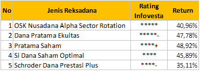 So, bagaimana memilih reksadana yang menguntungkan dengan mudah: tanpa bermaksud mengendorse infovesta.com, saya menyarankan rekan-rekan memilih produk reksadana dengan rating bintang yang tinggi. Saya yakin bahwa website tersebut memberikan rating dengan pertimbangan yang cukup matang. Tentunya, kalau anda ingin return yang lebih baik, perlu riset mandiri yang membutuhkan waktu =)